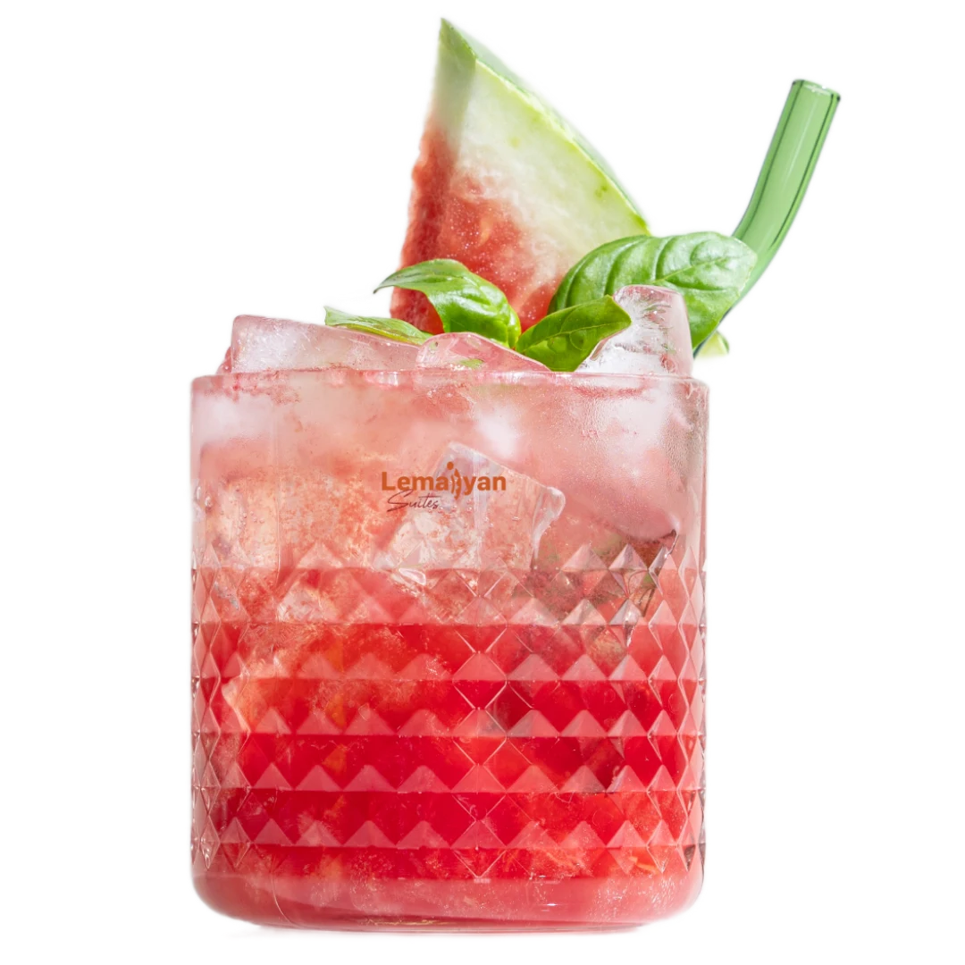 An invigorating blend of juicy watermelon, zesty lemon, aromatic mint, and a hint of sweetness from sugar syrup. a perfect summer refresher.