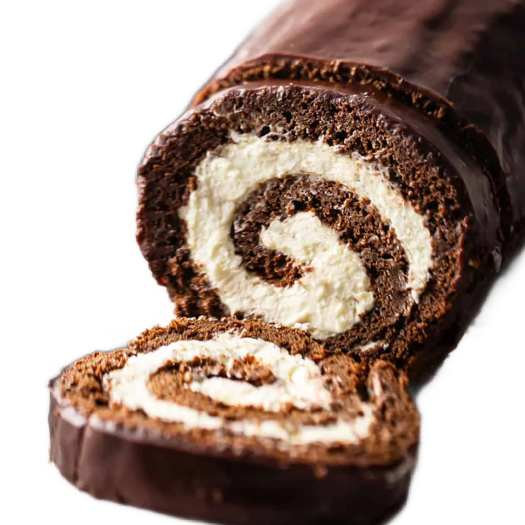 A delicate spiral of light sponge cake enfolding a luscious layer of filling.