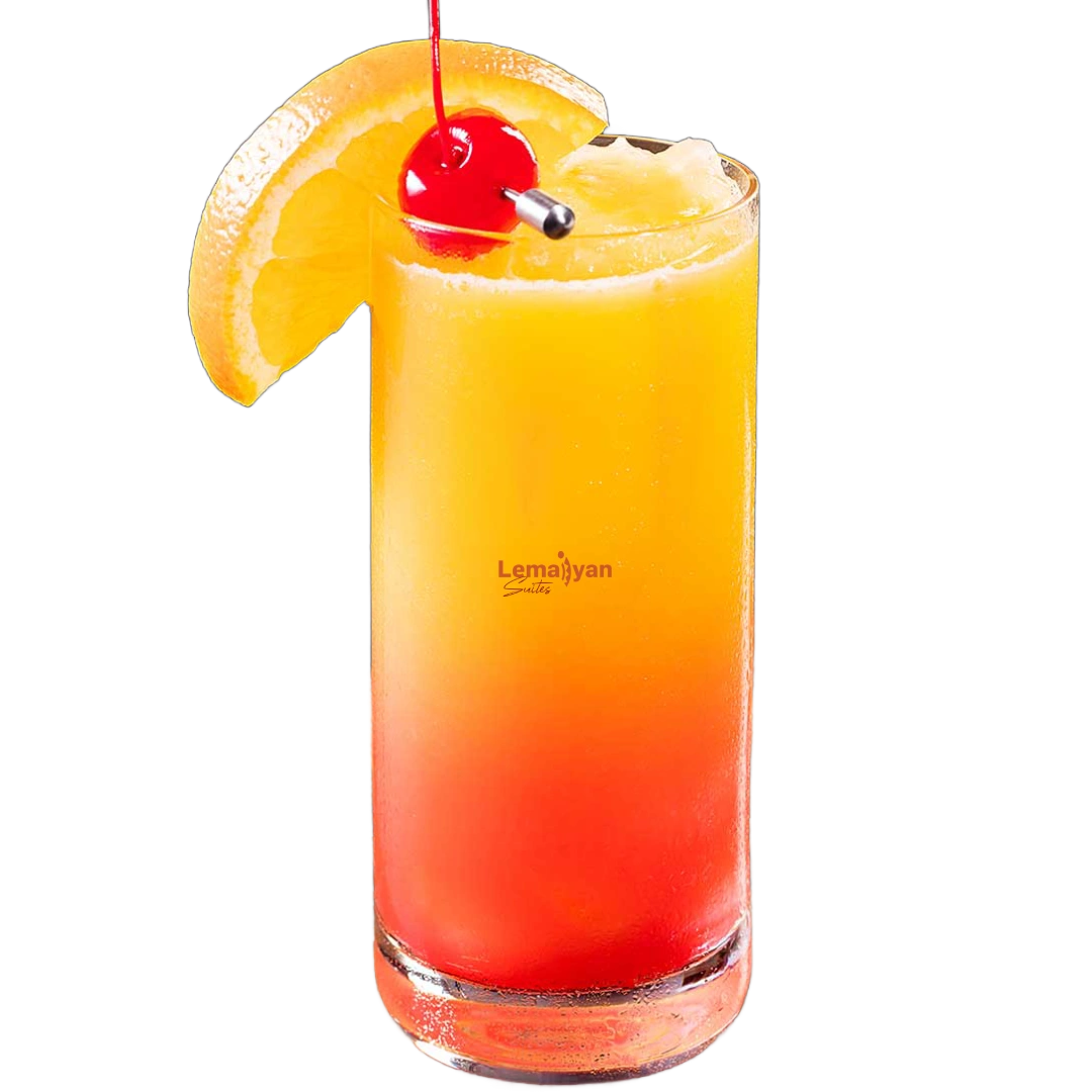 Experience the captivating allure of the Tequila Sunrise, a cocktail that paints a vivid picture of dawn’s first light with its stunning layers. The journey begins with the bold spirit of tequila, setting a robust and spirited base that promises warmth. This is seamlessly melded with the vibrant zest of fresh orange juice, reminiscent of morning’s first rays. As the crowning touch, a splash of grenadine is added, its deep red hue sinking to the bottom and mimicking the hues of a sunrise sky. Garnished with a maraschino berry, the Tequila Sunrise is a visual and taste spectacle, promising a bright start to any occasion.
